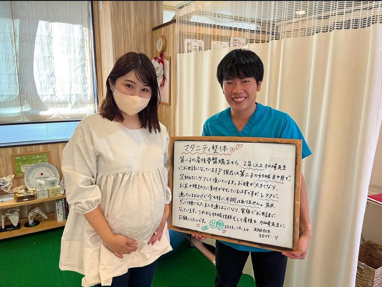 当院では産後骨盤矯正だけでなく、妊娠中の方のお体もサポート出来る様にマタニティ整体も行っています!