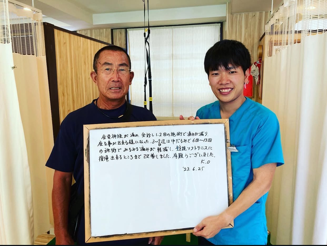 腰痛にお悩みの方からは「1〜2回の施術で痛みが減り、座る事が出来る様になった。6〜13回の施術でみるみる痛みが軽減し、競技ソフトテニスに復帰出来るところまで改善しました。」との声をいただいております!