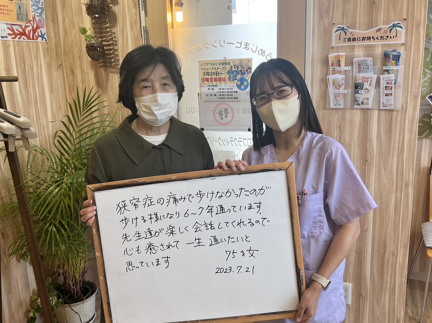 症状にお悩みの方からは「狭窄症の痛みで歩けなかったのが、歩ける様になり6~7年通っています」とのお声をいただいています!